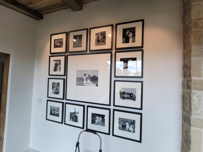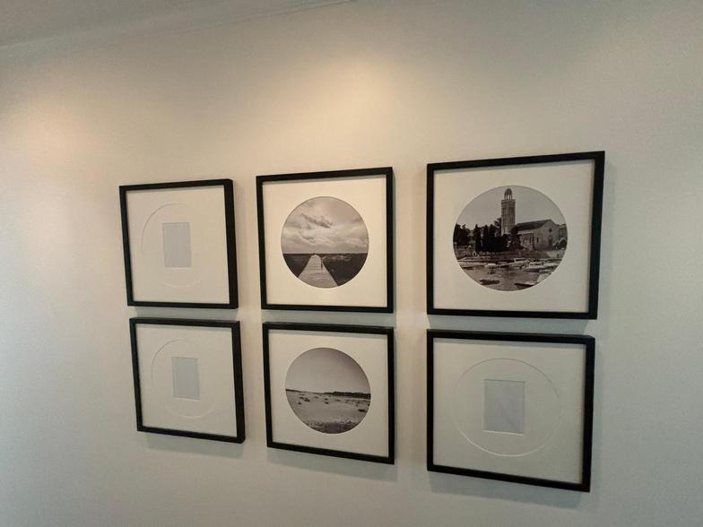 From perfectly balanced gallery walls to museum-level placements, every piece is measured, leveled, spaced, and secured with exacting care. Whether it’s a multi-frame family archive, a large-scale abstract diptych, a sculptural installation on a stairwell, or a statement mirror in marble — we install with intention.